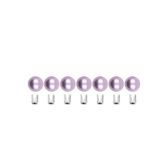 Producto: Perla con Remache (100 Unidades de Perlas + 100 Unidades de Remaches)) • Material: Acrílico y Metal • Fijación: para Fijar con Máquina Remachadora de Perlas • Uso: Personalización de Poleras, Chaquetas, Vestidos, Bodies, Bolsos • Color: Lila