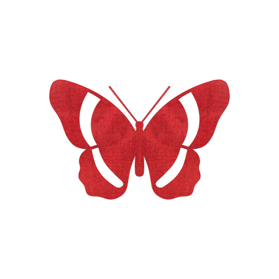 Producto: Parche (10 Unidades) • Diseño: ´mariposa roja Ranuras • Material: Capas metalizadas • Tamaño: 13 Cm de Ancho X 8.5 Cm de Alto • Adhesión: Incluye Capa Termoadhesiva. Listo para Pegar con Plancha Térmica o Plancha Casera • Uso: Personalización de Poleras, Chaquetas, Vestidos, Bodies, Bolsos