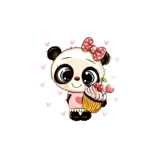 Producto: Aplique • Diseño: Panda Cupcake • Material: Vinilo • Tamaño: 11.5 Cm de Ancho X 12 Cm de Alto • Adhesión: Incluye Capa Termoadhesiva. Listo para Pegar con Plancha Térmica o Plancha Casera • Uso: Personalización de Poleras, Polerones