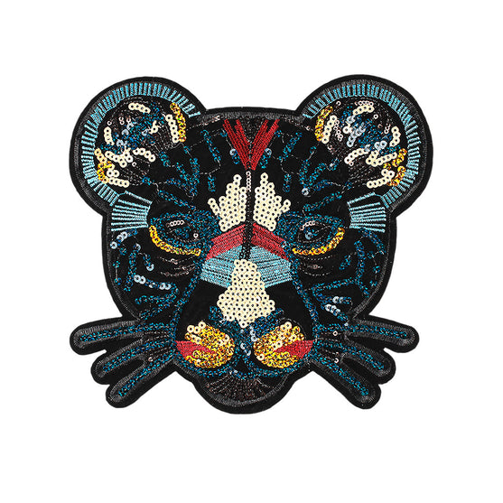 Producto: Parche • Diseño: Pantera Negra • Material: Lentejuelas Bordadas, Flocking • Tamaño: 23 cm de Ancho X 21 Cm de Alto • Adhesión: Incluye Capa Termoadhesiva. Listo para Pegar con Plancha Térmica o Plancha Casera • Uso: Personalización de Poleras, Chaquetas, Vestidos, Bodies