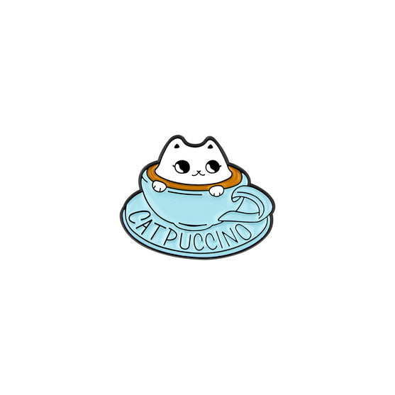 Producto: Pin • Diseño: Catpuccino • Material: Aleación de Zinc, Esmaltado, Suavizado • Tamaño: 3 Cm de Ancho X 2.4 Cm de Alto, 2 Mm Espesor • Cierre: Clutch Mariposa • Uso: Decoración de Poleras, Chaquetas, Vestidos, Bodies, Bolsos • Color principal: Celeste